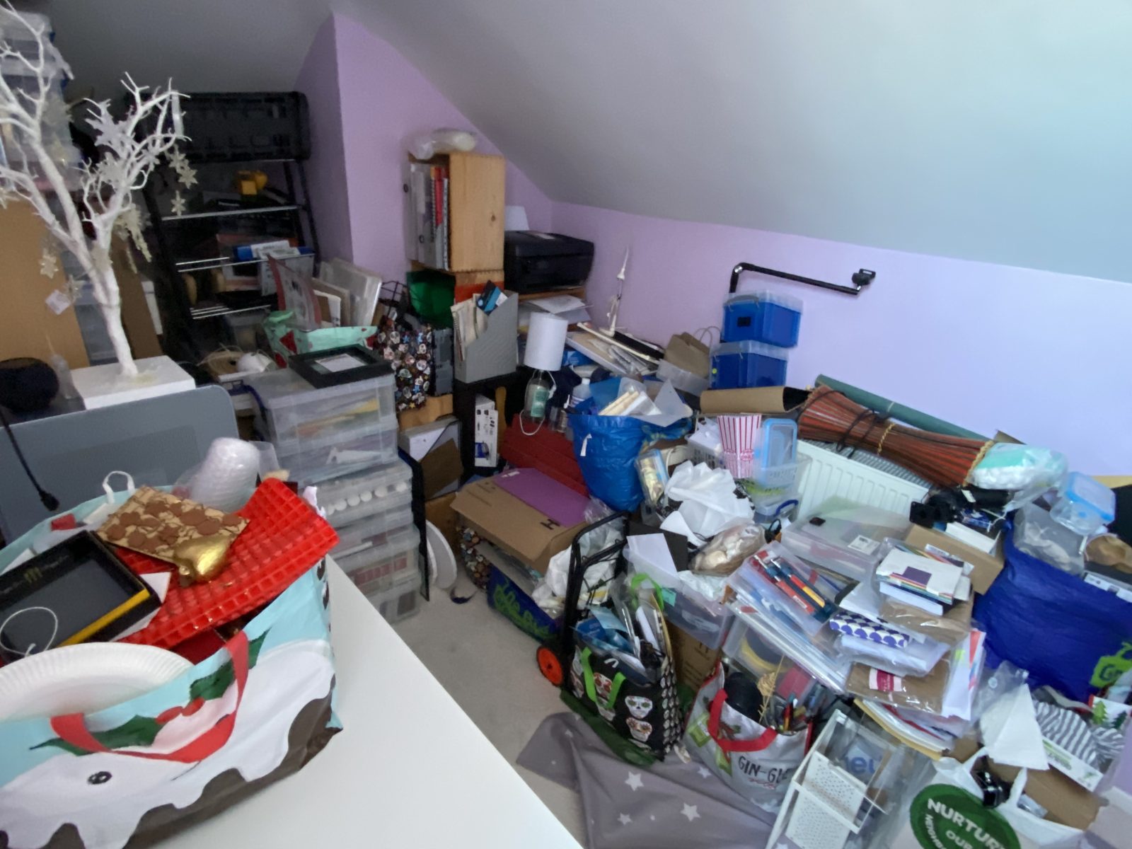 This craft room had gradually become an overflow storage space, housing a wide variety of items alongside numerous craft collections. As a result, the room was no longer usable for crafting, and materials had spilled into the living room, meaning neither room was serving its intended purpose.